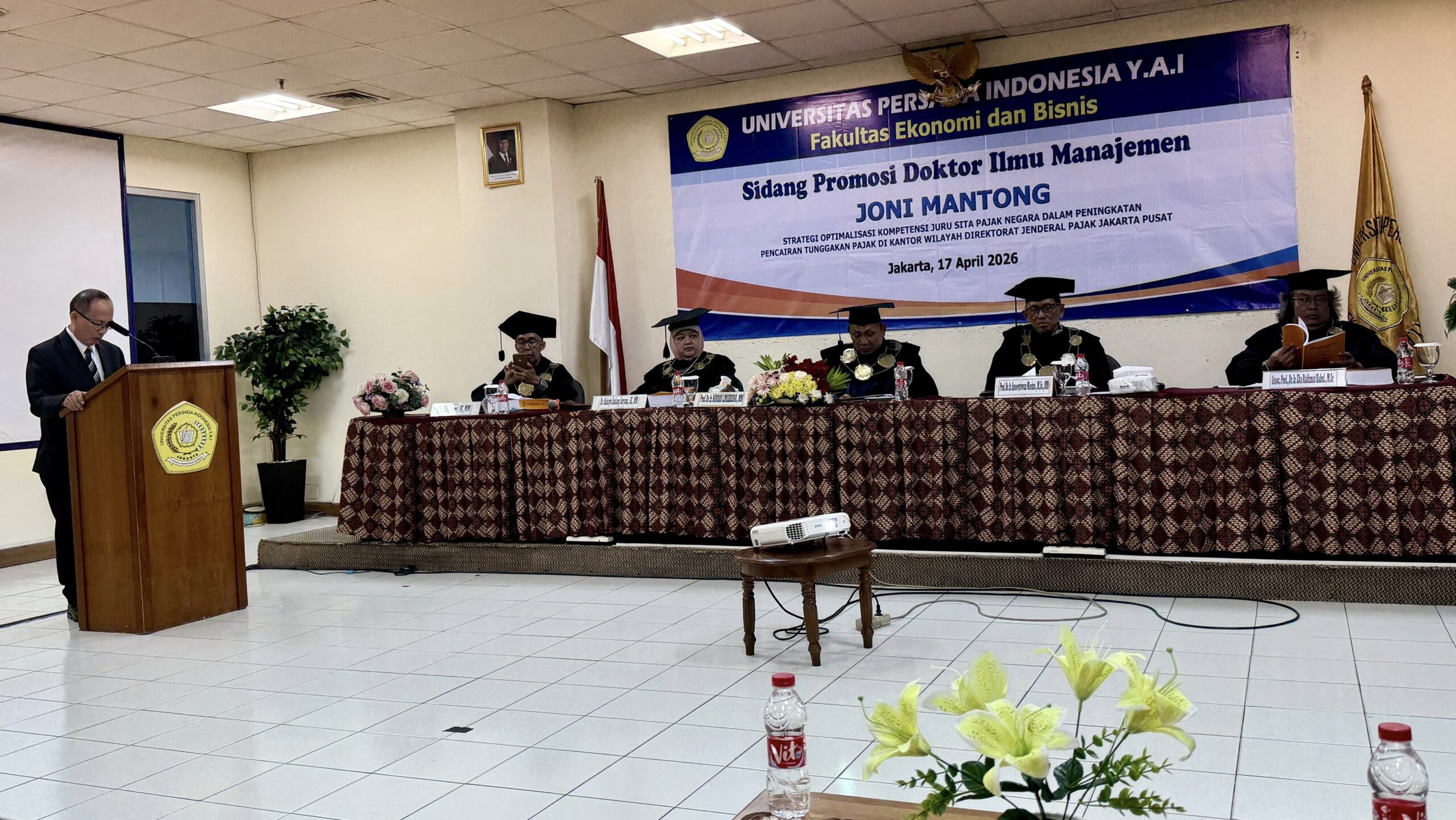 Dengan hasil yang sangat gemilang itu, Joni Mantong dikukuhkan sebagai Doktor ke-577 Universitas Persada Indonesia YAI.