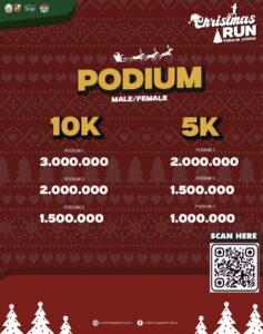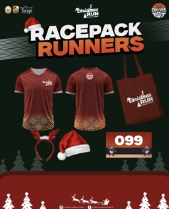 Tidak hanya itu saja setiap peserta akan mendapatkan racepack yang isinya Jersey, produk sponsorship, bib dan aksesoris natal (Topi Santa dan bando) yang akan mereka gunakan.