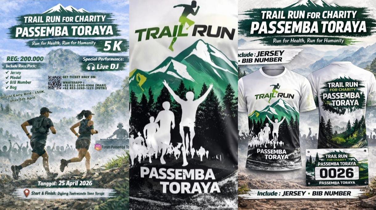 TANA TORAJA, Vressnews – Komunitas Passemba Toraya akan menggelar kegiatan “Trail Run for Charity Passemba Toraya” pada tanggal 25 April 2026.