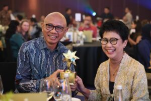 William Sabandar dan Istri dr. Valentina Ismetiah Bitticaca, Sp. PA, saat berfoto usai menerima penghargaan Australian Alumni of the Year 2025. Foto: Istimewa