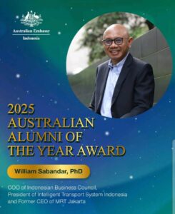 Atas berbagai dedikasinya dalam membangun Indonesia diberbagai sektor inilah Willian Sabandar dianugerahi Australian Alumni of the Year 2025, Penghargaan tertinggi, yang diberikan oleh Kedutaan Besar Australia kepada para alumni terbaik Indonesia lulusan berbagai universitas di Australia.