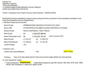Bukti Pembayaran BPJS Pekerja Pembangunan Gedung UTD, CATHLab Serta CVCU Rumah. Foto: Istimewa