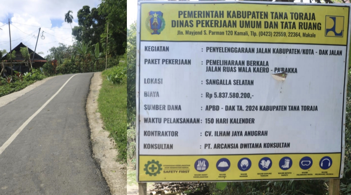 TANA TORAJA, Vressnews – Proyek pemeliharaan berkala jalan ruas Wala Kero-Pa’bakka di Kecamatan Sangalla Selatan, Kabupaten Tana Toraja menyisakan tanda tanya. Pasalnya, proyek bernilai Rp5,8 miliar itu hanya menghasilkan pekerjaan sepanjang 3 kilometer dan menjadi temuan BPK Sulawesi Selatan.